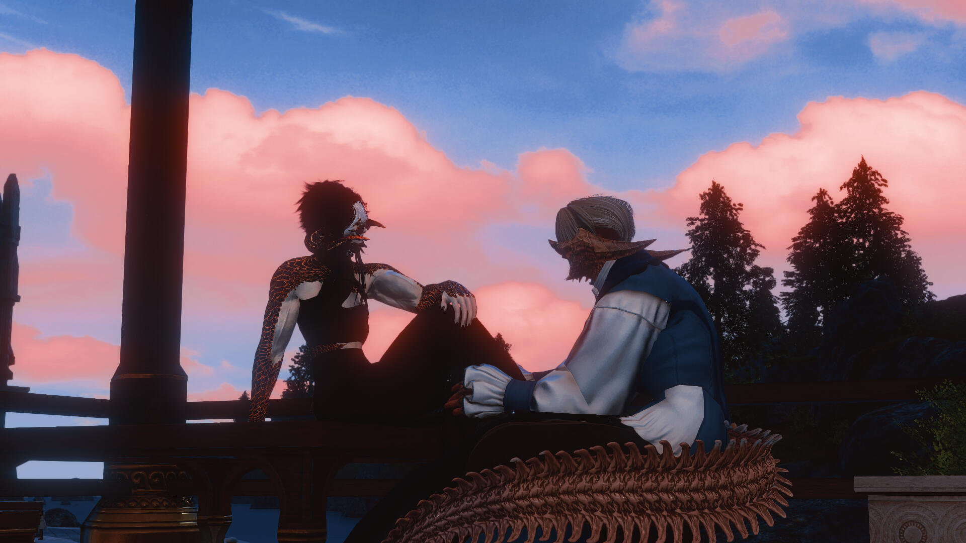 Vain is rather outgoing and chipper in meeting him for the first time. Most people are surprised to see a Xaela that's happy, but with being raised in Kugane, he is not prone to the more war prone mindset like the Xaela of the Steppe. Rather, he is bubbly and cheerful, and rather quite flirty once he gets comfortable around another. He loves going out to clubs and such, with his vice being gambling with Black jack being his game of choice.Outside of that, you can see him running around either Kugane or Limsa, where he likes to people watch. He finds people absolutely fascinating, and can be seen sitting on the edges of the Limsa lower plaza curled up and enjoying both the sun and the conversations around him.